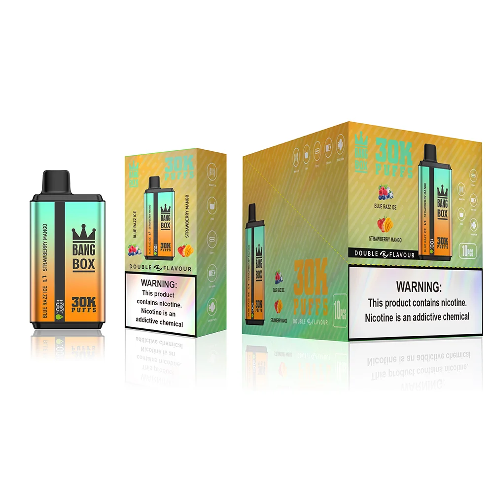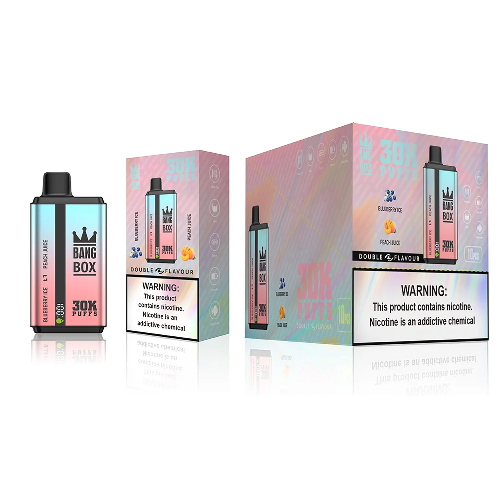 Compra el vaper desechable Bang King 30K Pro de 30 000 caladas. Disfruta de 36 ml de e-líquido, batería de 850 mAh, puerto de carga tipo C y sabores populares como arándano, frambuesa y menta fresca. Disponible en múltiples concentraciones de nicotina. Ideal para minoristas y usuarios particulares que buscan un rendimiento duradero. Envío rápido DDP dentro de Europa.