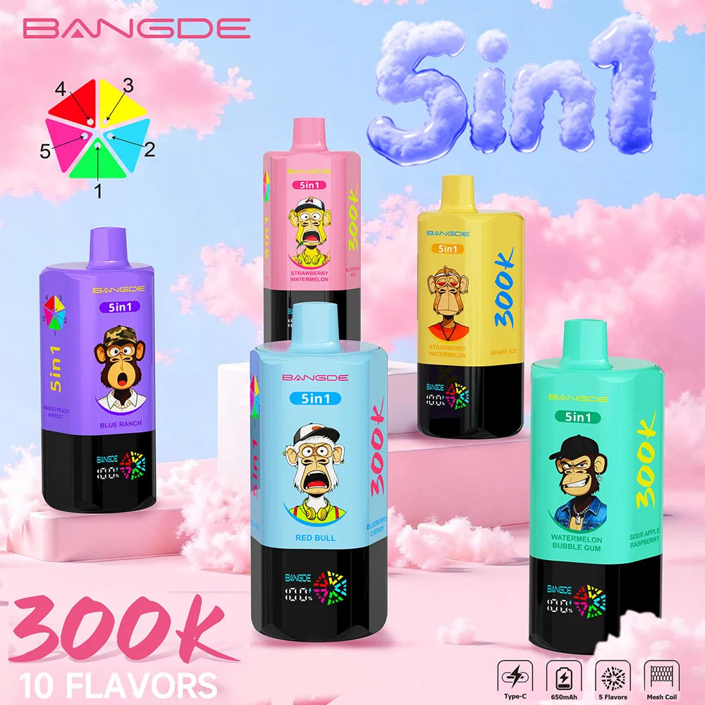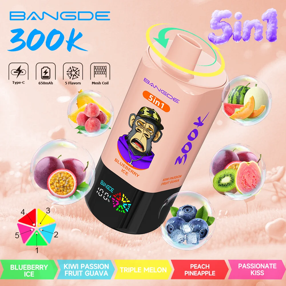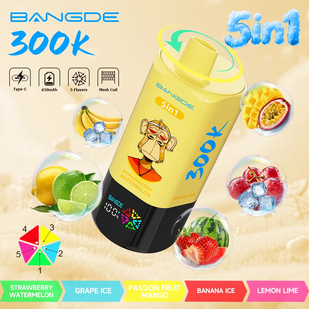 El Bang DE 300000 Puff desechable de 5 en 1 presenta un exclusivo interruptor de sabor rotativo y diseños icónicos de la Serie Monkey. Con una capacidad de e-líquido ultra grande de hasta 100ml y sabores ricos e intensos.