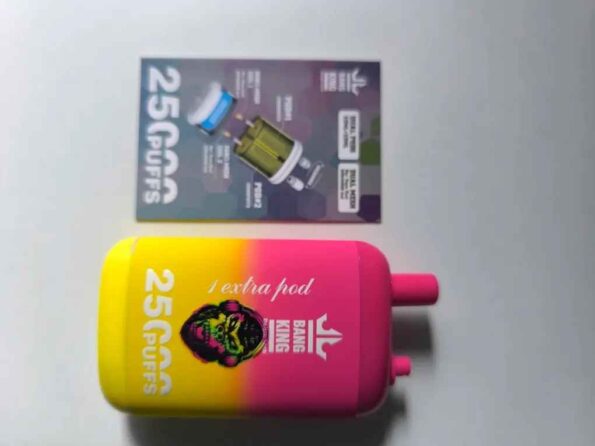 Descubre el vaporizador Bang King de 25000 caladas. Este vaporizador desechable incluye dos cápsulas, lo que te ofrece una experiencia duradera y un sabor excelente.