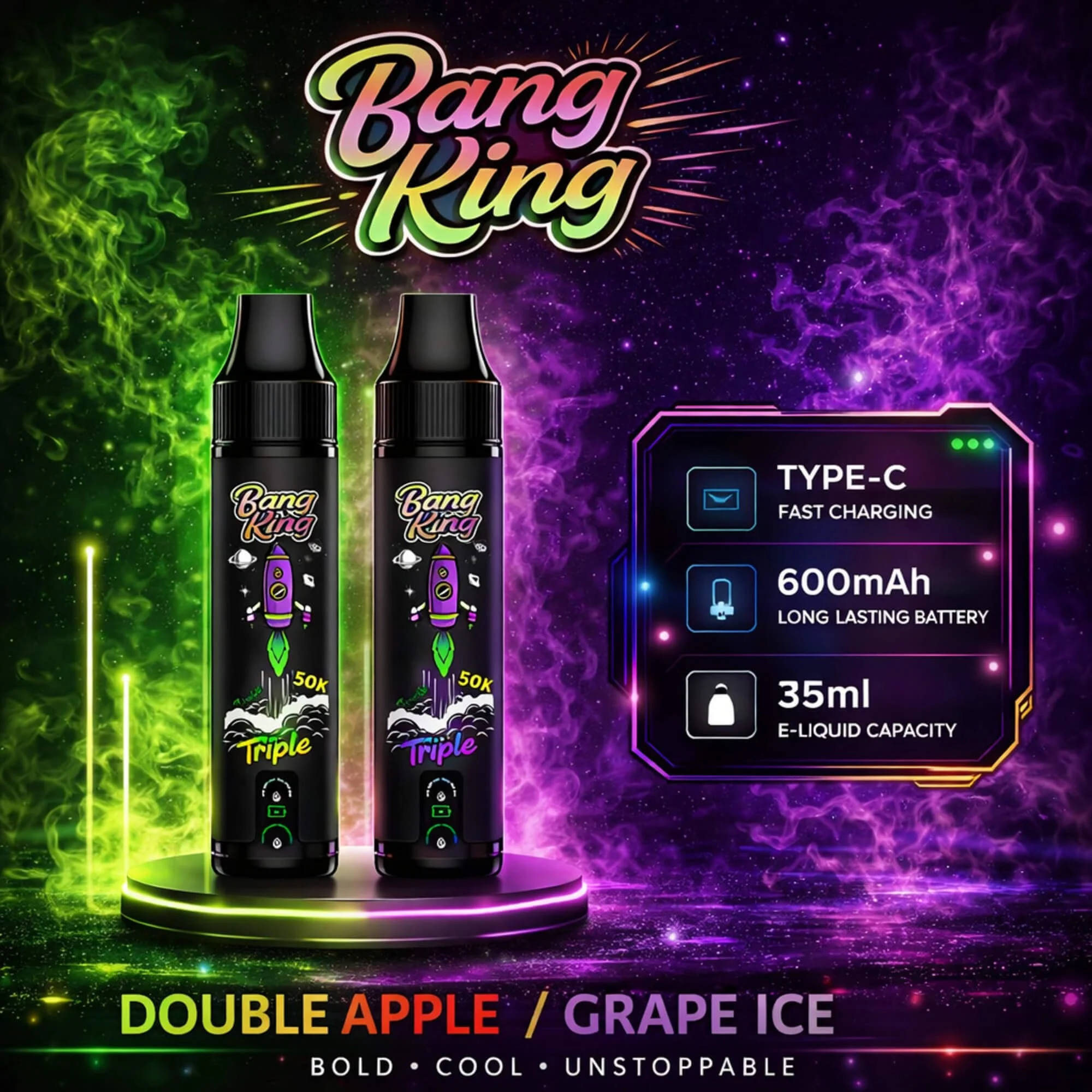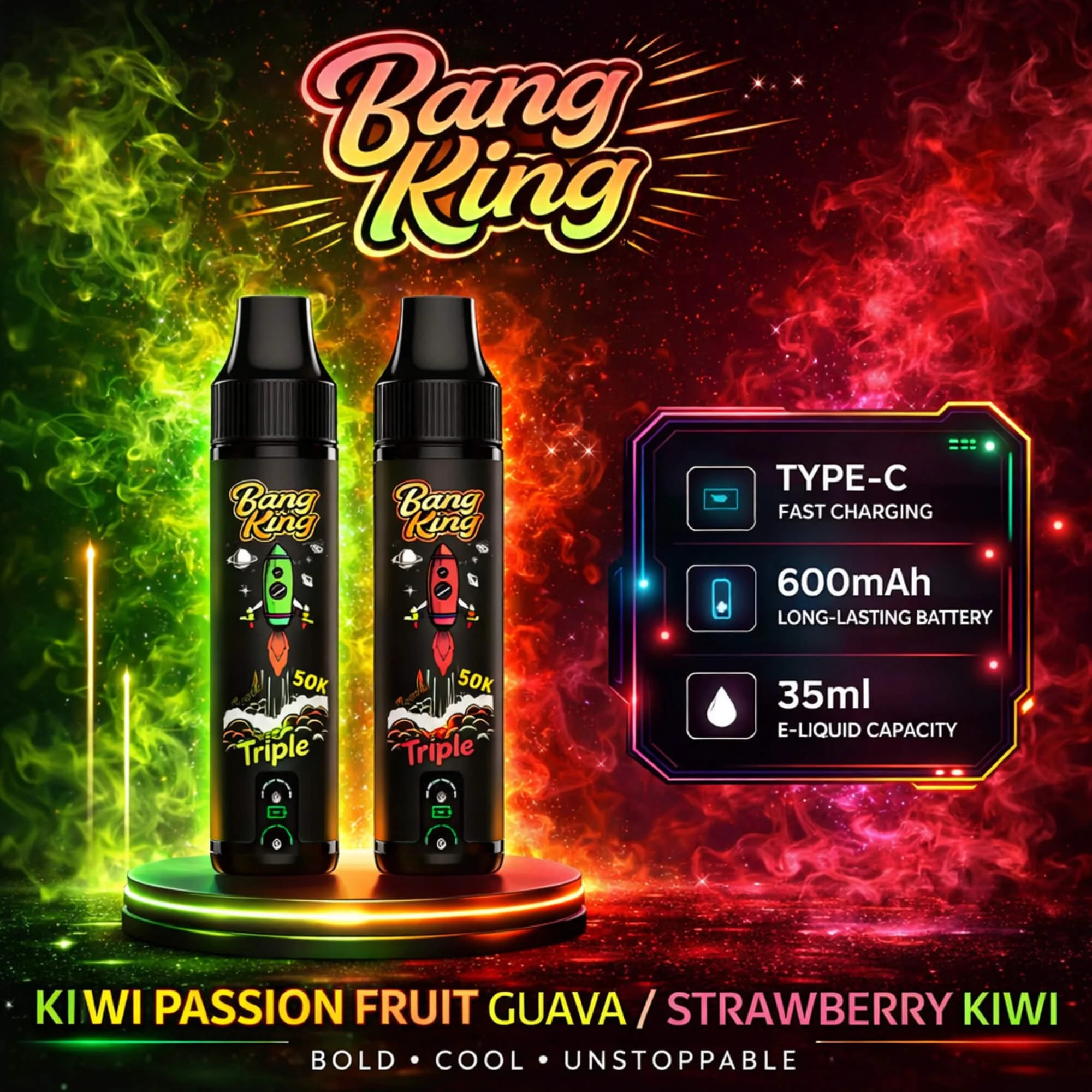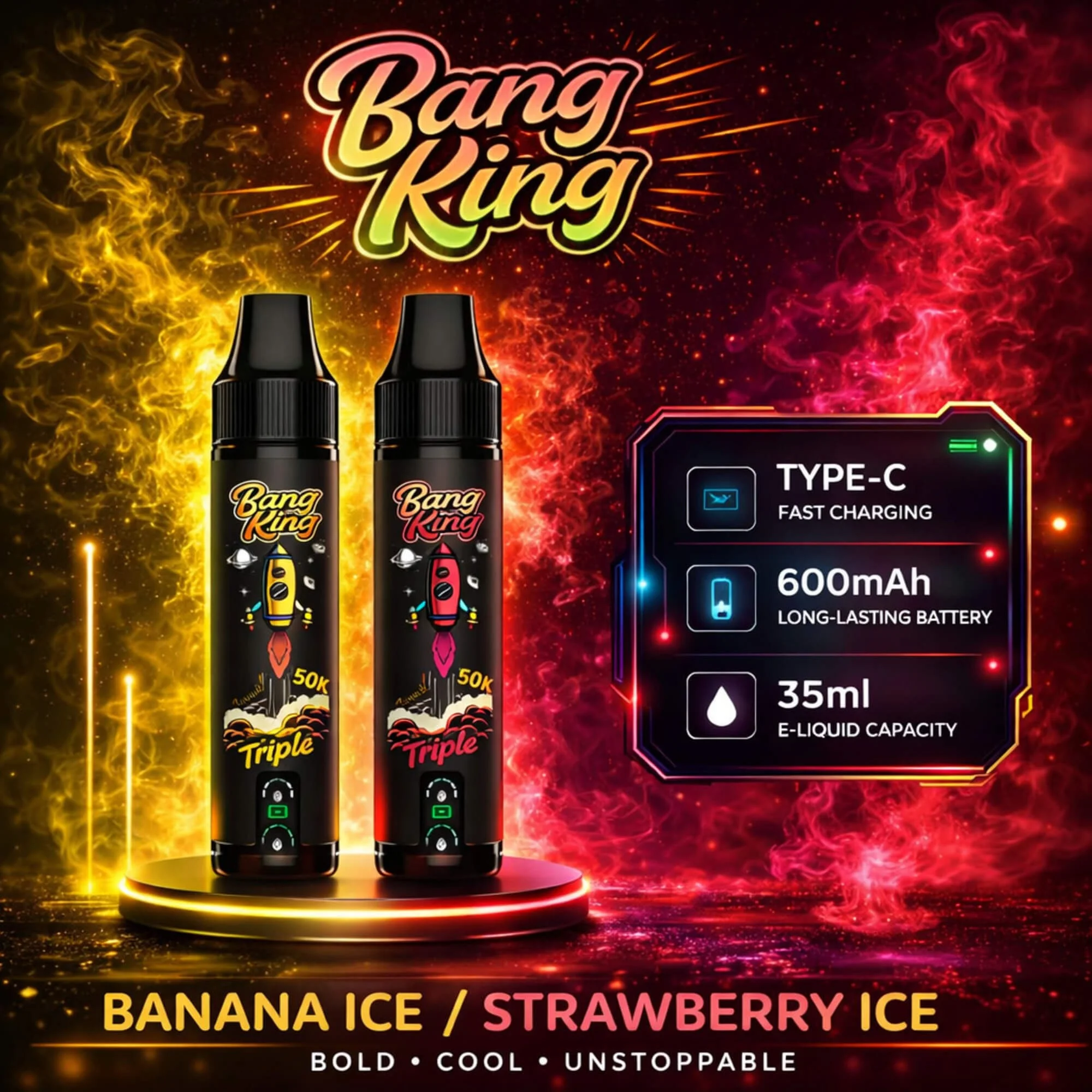 Bang King Triple 50000 Puffs Vape | Cambio de Sabor Inteligente 3 en 1