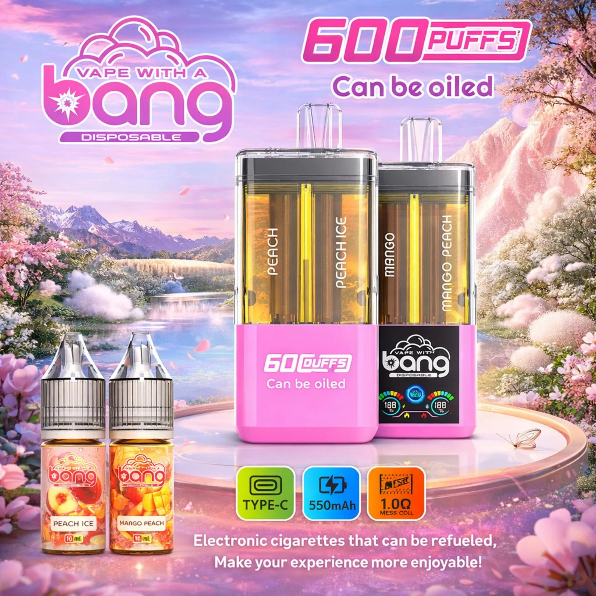 El Bang Vape 60000 Puffs Recargable es un vape desechable 2-en-1 que presenta una carcasa transparente y una pantalla LED inteligente. Utiliza una bobina Dual Mesh de 1.0Ω y una batería recargable de 550mAh para ofrecer un rico sabor y grandes nubes. Su diseño recargable y fácil cambio de sabores lo convierten en una opción versátil y enfocada a la tecnología para el mercado europeo.