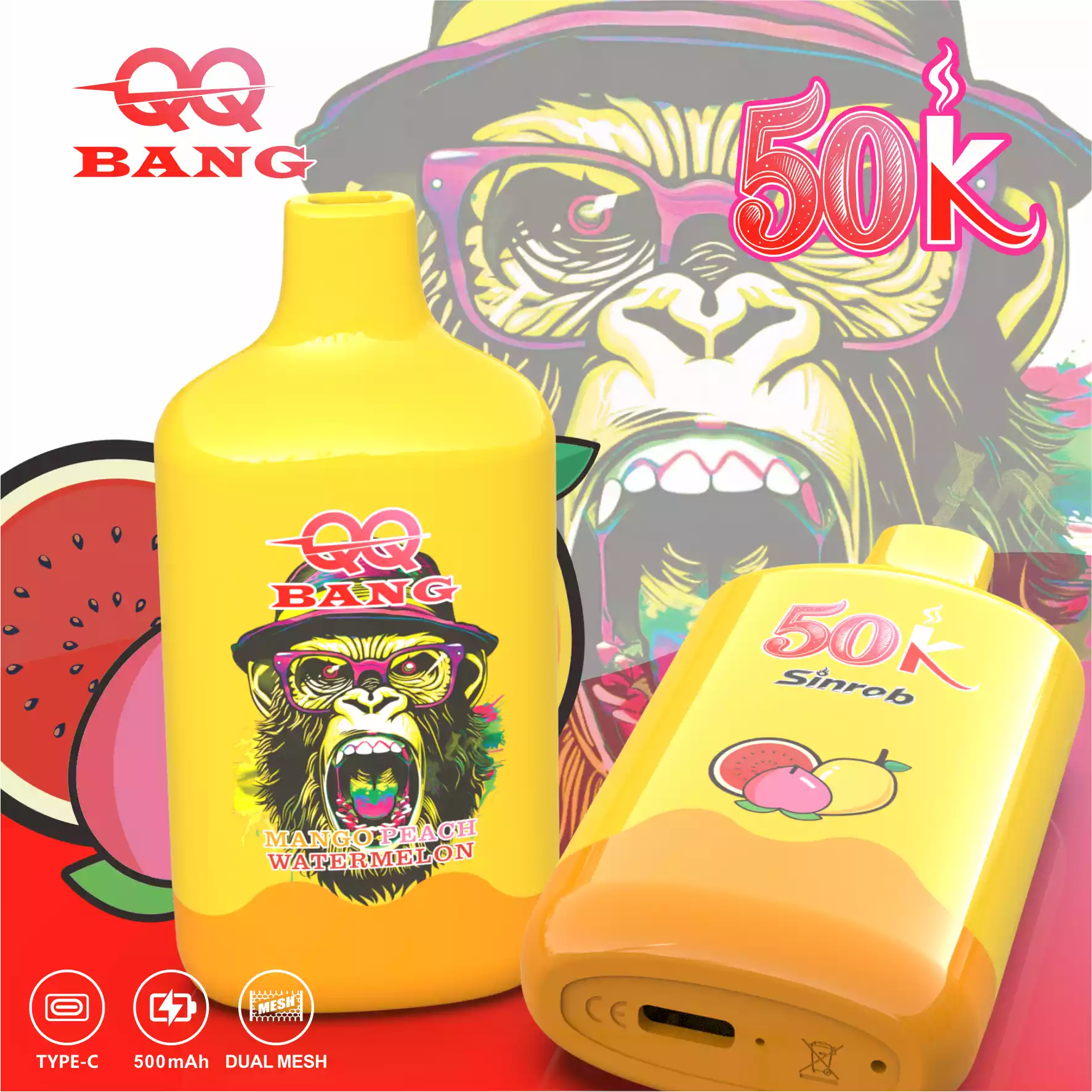 El QQ BANG 50000 Puff es un vape desechable de alta capacidad que presenta el popular diseño de mono. Viene precargado con 40 ml de e-líquido y utiliza una bobina de malla de 1.2Ω para grandes nubes y un sabor rico.